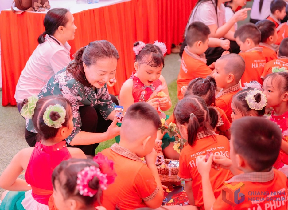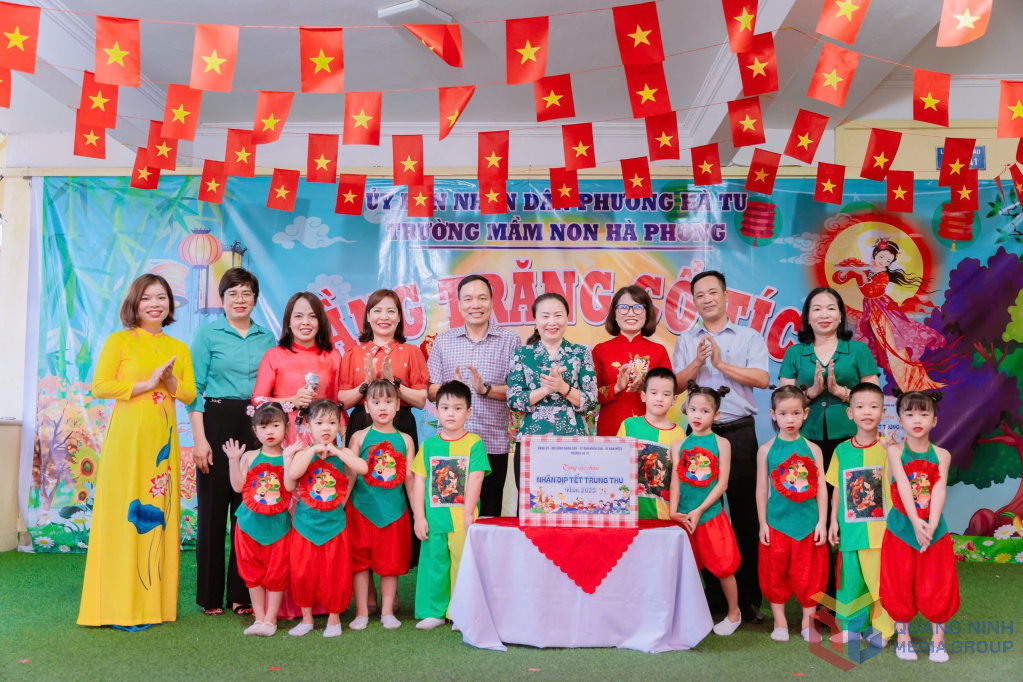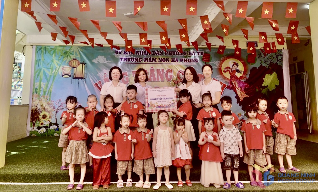 Lãnh đạo phường Hà Tu tặng quà, vui tết Trung thu cùng các cháu thiếu nhi Trường Mầm non Hà Phong.
