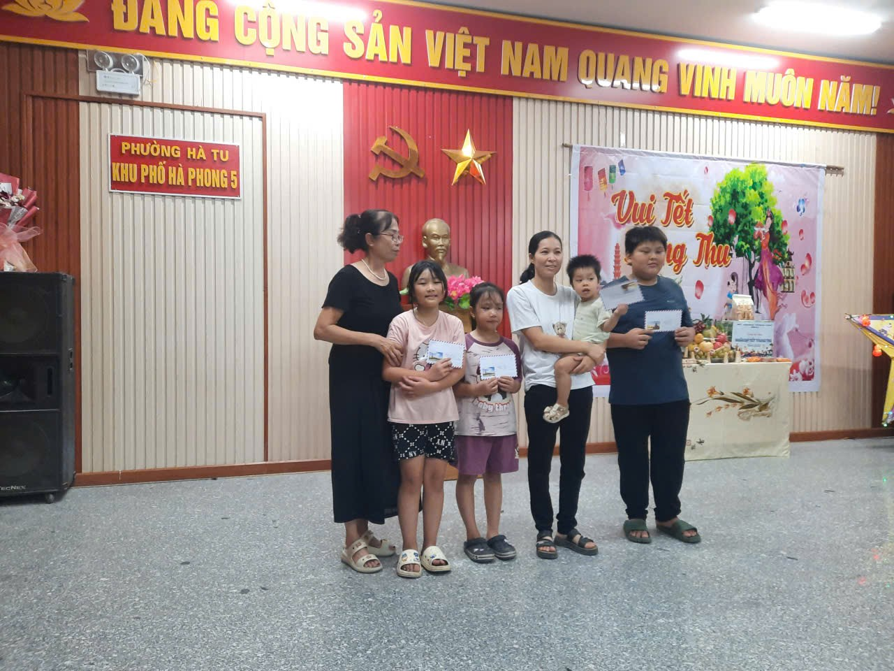 Tại các khu phố, chương trình diễn ra trong không khí đầm ấm, vui tươi với phần rước đèn ông sao, biểu diễn văn nghệ, múa lân, trò chơi dân gian và trao quà Trung thu cho các em nhỏ. Hàng trăm phần quà ý nghĩa được trao tận tay trẻ em có hoàn cảnh khó khăn, thể hiện sự quan tâm của cấp ủy Đảng, chính quyền, Mặt trận Tổ quốc và các đoàn thể phường Hà Tu trong chăm lo cho thanh thiếu nhi trên địa bàn.