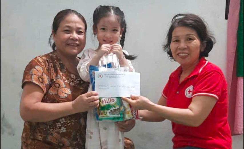 Hội Chữ thập đỏ phường Hà Tu tặng 30 suất quà cho các cháu có hoàn cảnh khó khăn và tàn tật với tổng giá trị 7,5 triệu đồng.