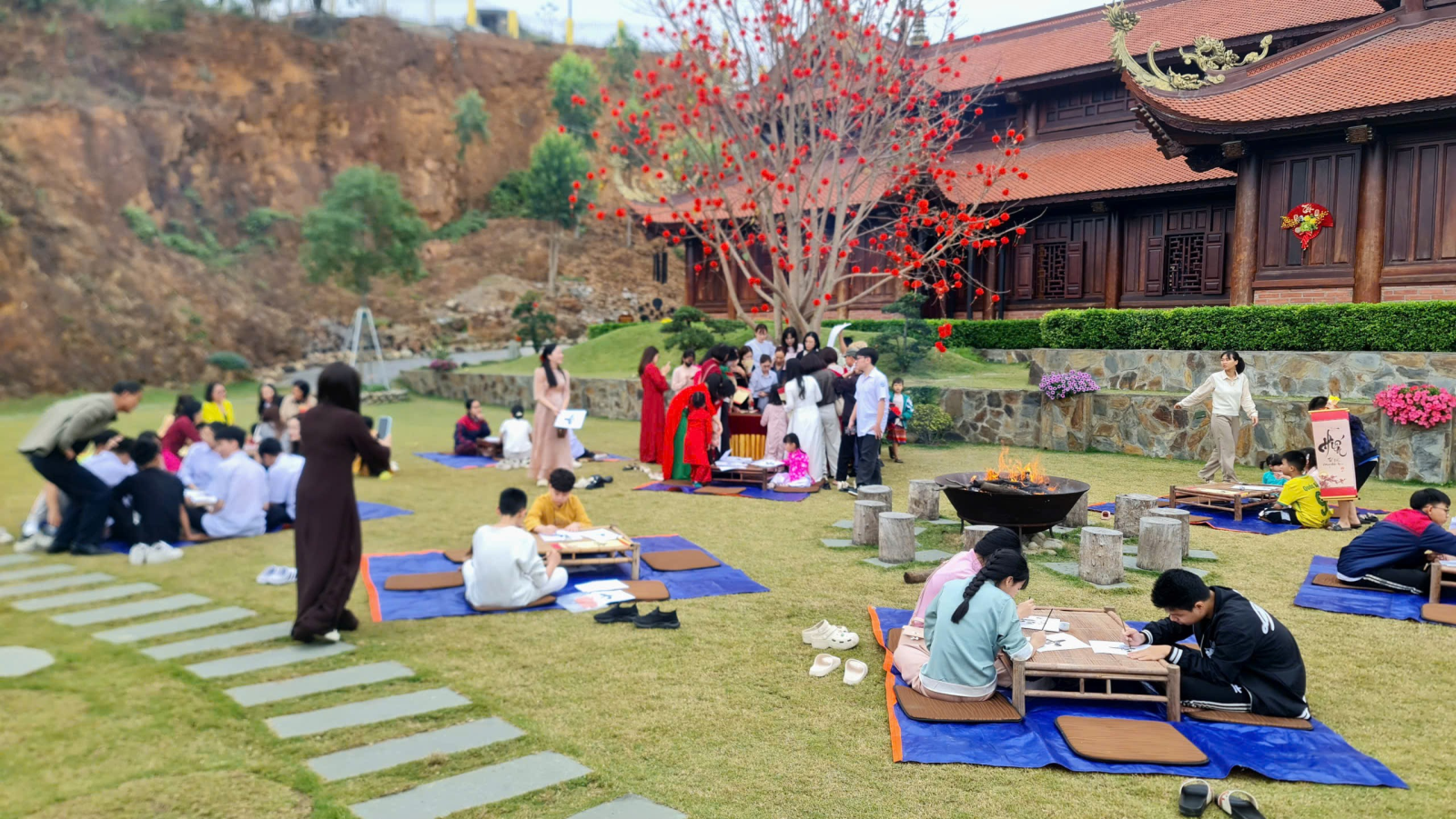 Từ sớm, đông đảo cán bộ, đảng viên, thầy cô giáo, học sinh và nhân dân đã tề tựu về sân chùa, cùng khởi đầu năm mới bằng những nét bút gửi gắm khát vọng tri thức và niềm tin vào tương lai.