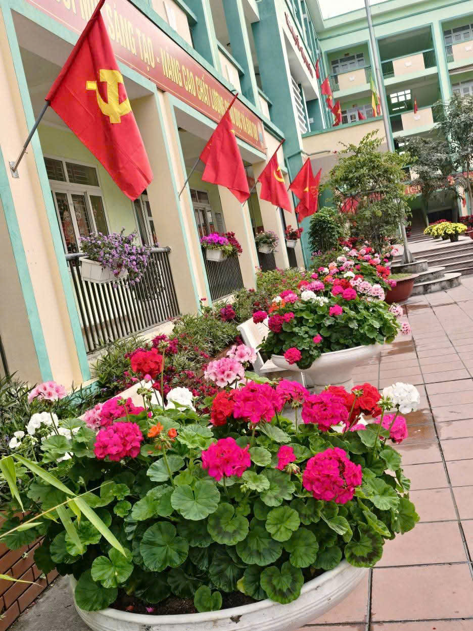 Một góc cảnh quan của nhà trường khi Xuân về