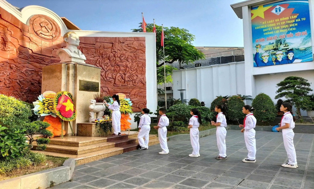 Hình ảnh các em học sinh trường THCS Hà Tu tại Lễ tưởng niệm đồng chí Vũ Văn Hiếu