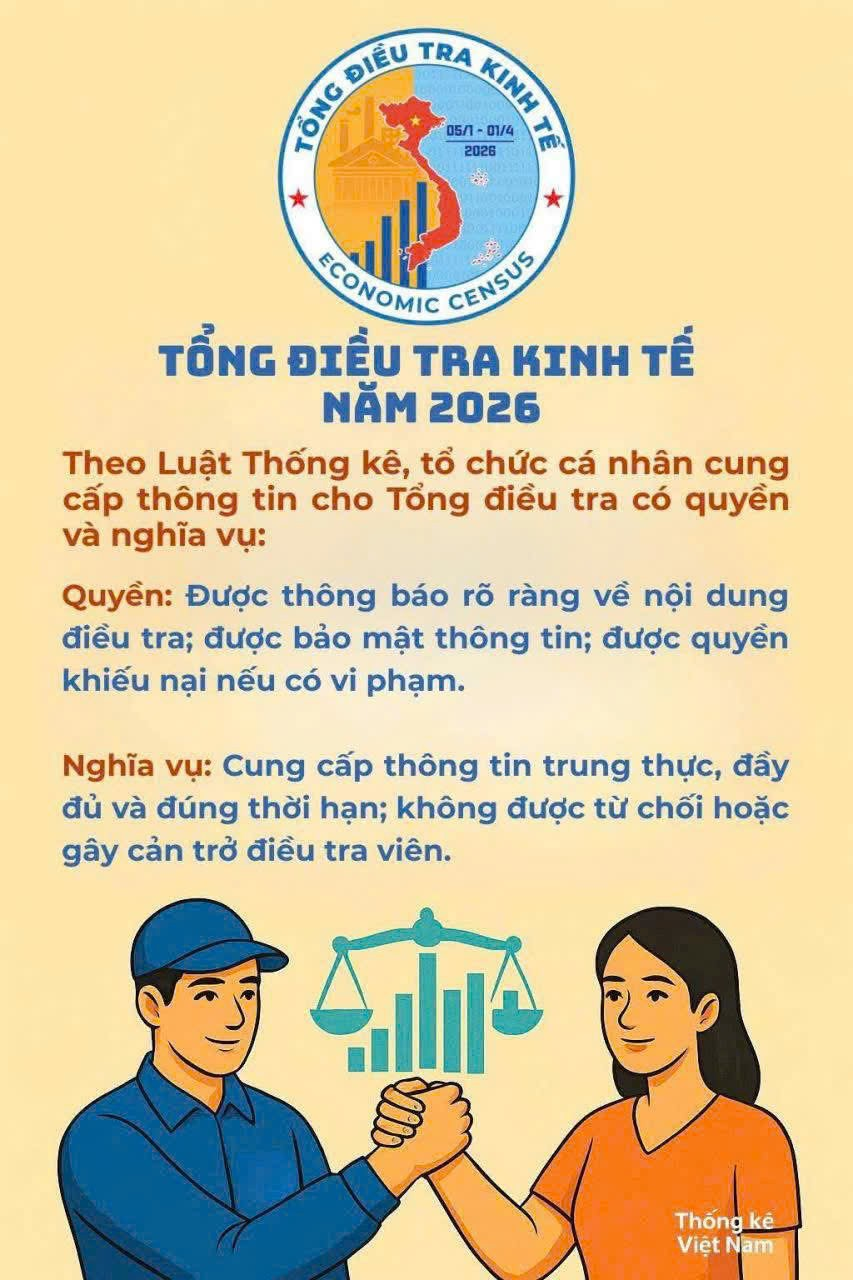 Hiện nay cuộc Tổng điều tra Kinh tế năm 2026 đang được thực hiện trên địa bàn phường Hà Tu. Đề nghị các đối tượng của Tổng điều tra kinh tế như các tập đoàn, doanh nghiệp, hợp tác xã, tổ hợp tác, đơn vị sự nghiệp, tổ chức xã hội, các cơ sở kinh doanh cá thể, cơ sở tôn giáo, tín ngưỡng trên địa bàn phường Hà Tu cung cấp thông tin đầy đủ, chính xác cho Điều tra viên, góp phần thực hiện thành công cuộc Tổng điều tra trên phạm vi toàn tỉnh Quảng Ninh và phường Hà Tu.