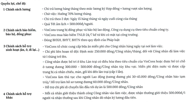 Số lượng: 50.000 người, lao động phổ thông